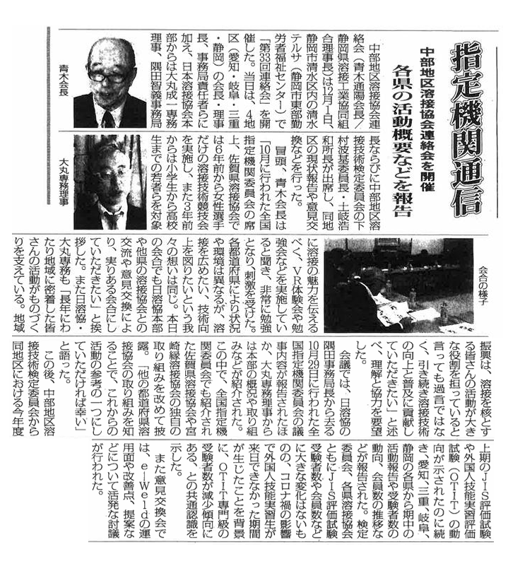 2026年1月14日 / 最終更新日 : 2026年1月15日 siz-yousetsu お知らせ 「中部地区溶接協会連絡会」開催されました (溶接ニュース 2026年1月13日 掲載) 愛知県・岐阜県・三重県・静岡県の4県(今年度静岡県が幹事県で静岡市で開催)
